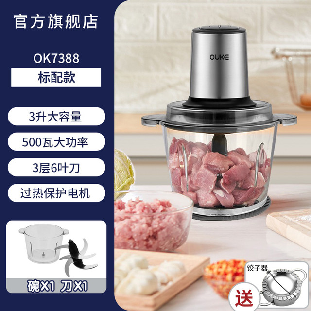 欧科 绞肉机家用辅食机电动小型料理机多功能绞菜碎肉搅拌机绞馅机
