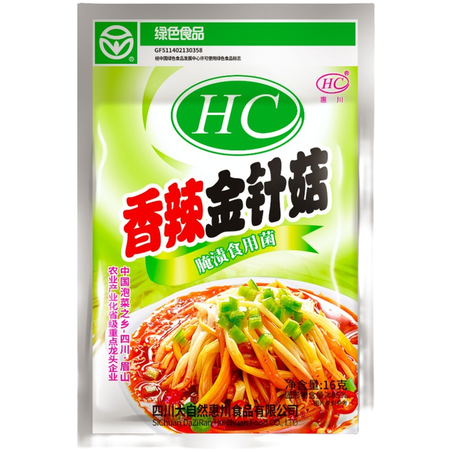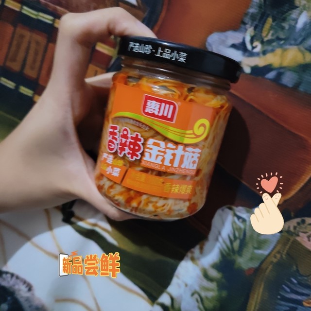 四川产的香辣金针菇真的超好吃,集结爽、滑、鲜、脆为一体!而且红油多多!搭配主食简直一绝!性价比也超高!!真的太喜欢惠川金针菇了!太好吃的!