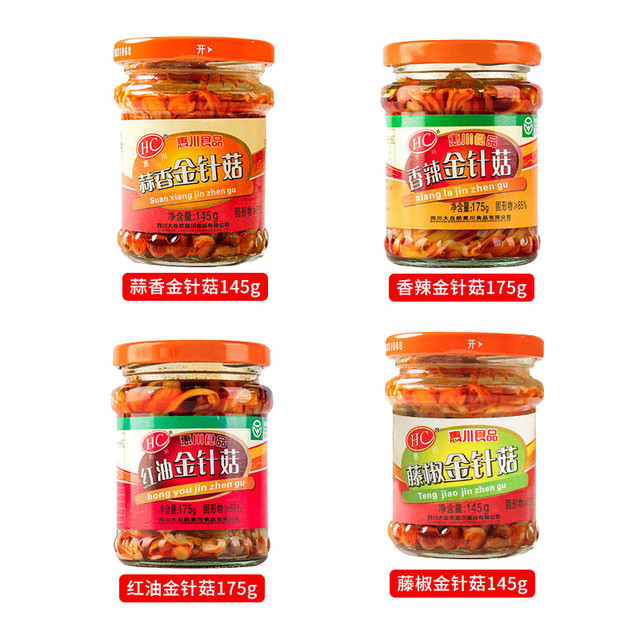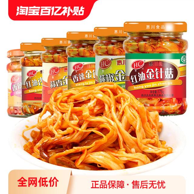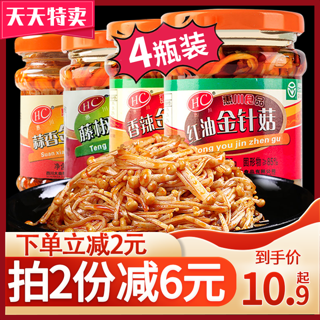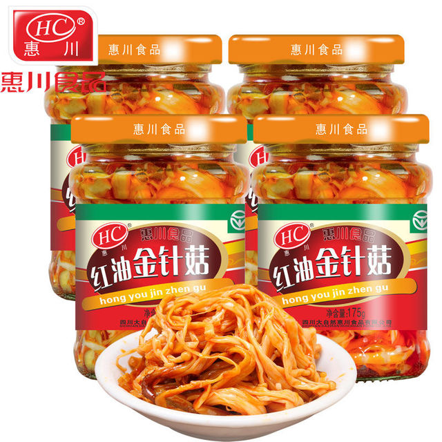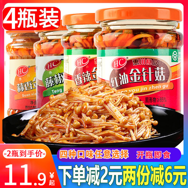 惠川 金针菇小零食罐装红油金针菇4瓶下饭菜香辣开罐即食开味零食10.9元(需用券)