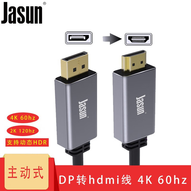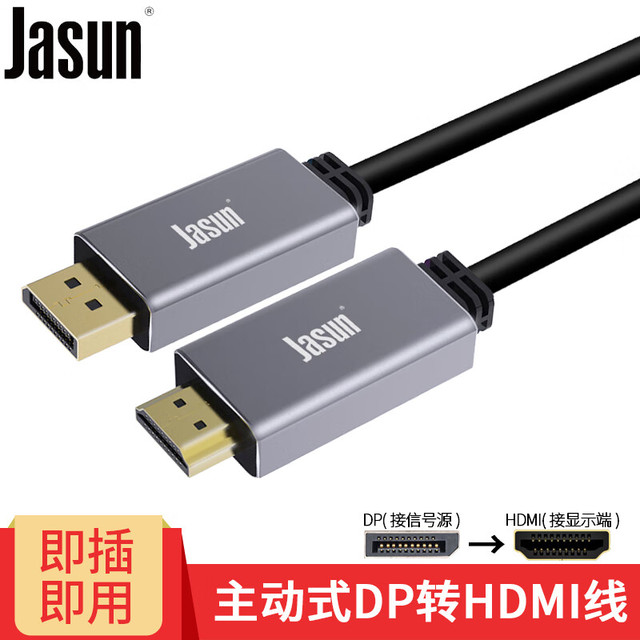 JASUN 佳星 捷顺DP转hdmi线1.5米 主动式 4K60hz 支持多屏拼接 电脑台式机笔记本接投影仪显示器电视线 JS-138 DP转hdmi 4K60hz 主动式 1.5米92.33元(需买3件,共277元)