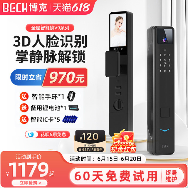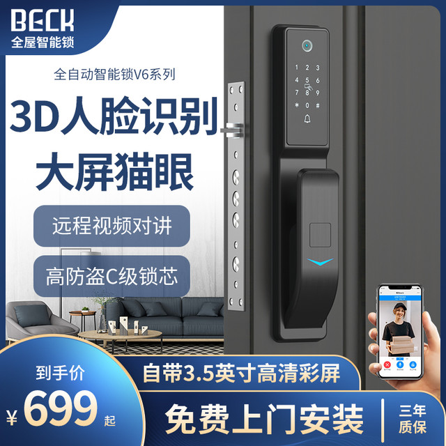 BECK 公羊 博克人脸识别指纹锁智能门锁可视猫眼全自动电子密码锁家用防盗V6