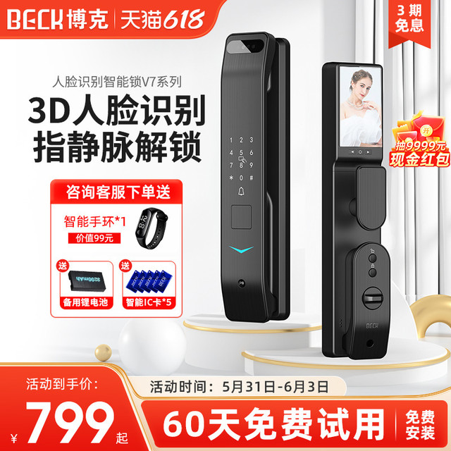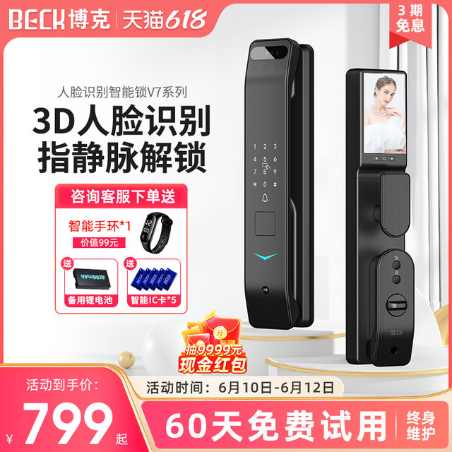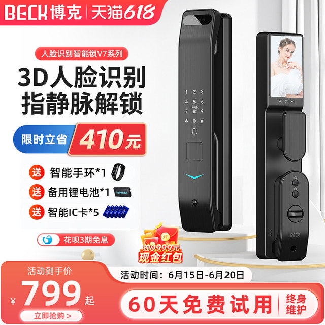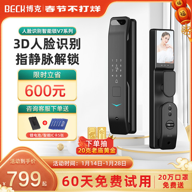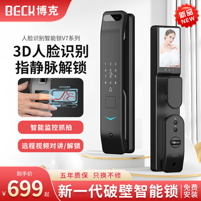 BECK 公羊 博克人脸识别指纹锁可视猫眼智能门锁全自动电子密码锁家用防盗V7