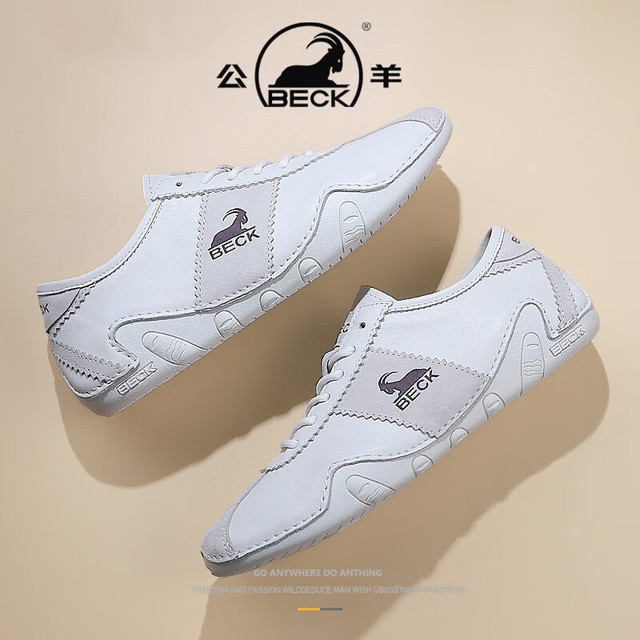 公羊(BECK)男鞋夏季透气2024小白鞋男真皮软底男士休闲鞋薄款轻便板鞋潮 白色【皮鞋码】 41
